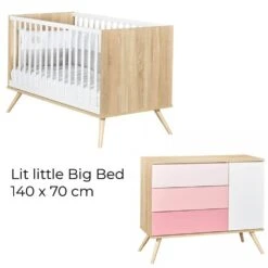 Cette armoire Sauthon comprend 5 tablettes mobiles, 1 tablette fixe, 1 grande porte et 1 petite porte en panneaux de particules revêtus de papier décor chêne Suave et chants décor bois. Elle possède également 2 poignées en plastique doré, 2 poignées en plastique anthracite, 4 pieds en hêtre brut et 1 petite tringle penderie. Afin d’utiliser l’armoire bébé en toute sécurité, elle doit être fixée au mur à l’aide de la sangle fournie.