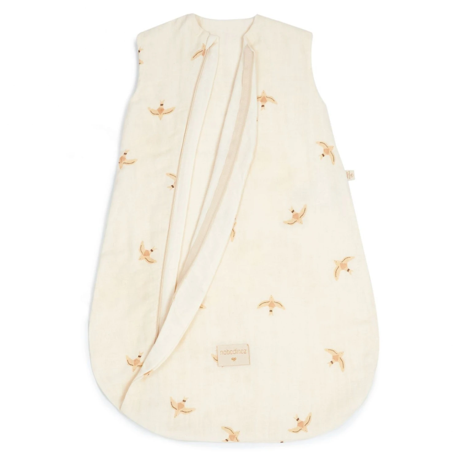Craquez pour la gigoteuse été Sweety de couleur nude haiku birds natural de la marque Nobodinoz. Elle a été spécialement conçue pour être utilisable de 6 à 18 mois. Cette gigoteuse légère possède un TOG 1, elle sera idéale pour une température allant de 24°C à 27°C. L’élément indispensable pour couvrir légèrement votre bébé lors des nuits d’été.