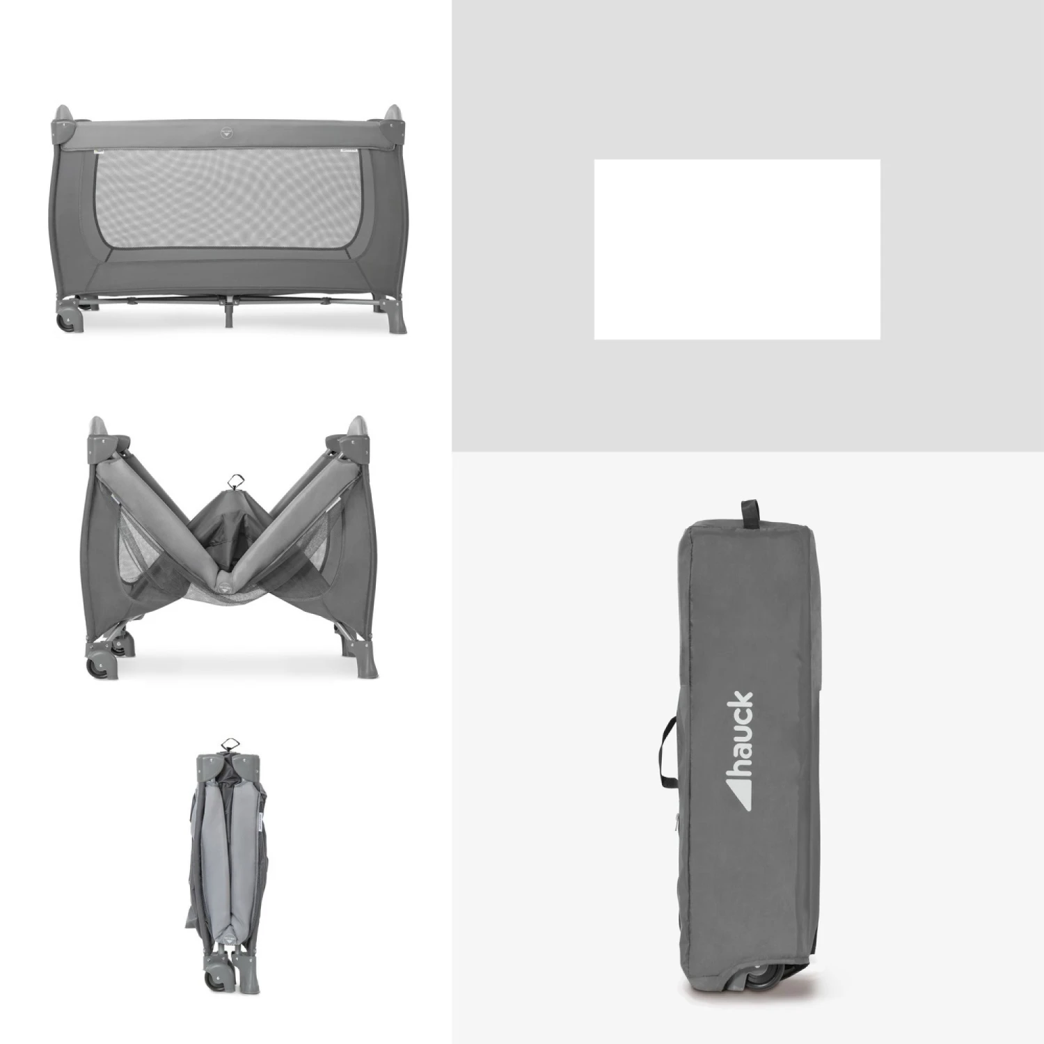 DĂ©couvrez le lit parapluie 3 en 1 Sleep N Play Go Plus Gris de la marque Hauck. Ce lit de voyage pliant est parfait pour vos dĂ©placements avec votre tout-petit. Confortable et facile Ă monter, il offre un sommeil de qualitĂ© Ă votre bĂ©bĂ©. Le lit parapluie est dotĂ© de roulettes et un sac de transport pour pouvoir le faire rouler comme une valise lors de vos dĂ©placements. Utilisable dès la naissance et ce jusqu’Ă 15kg.Â