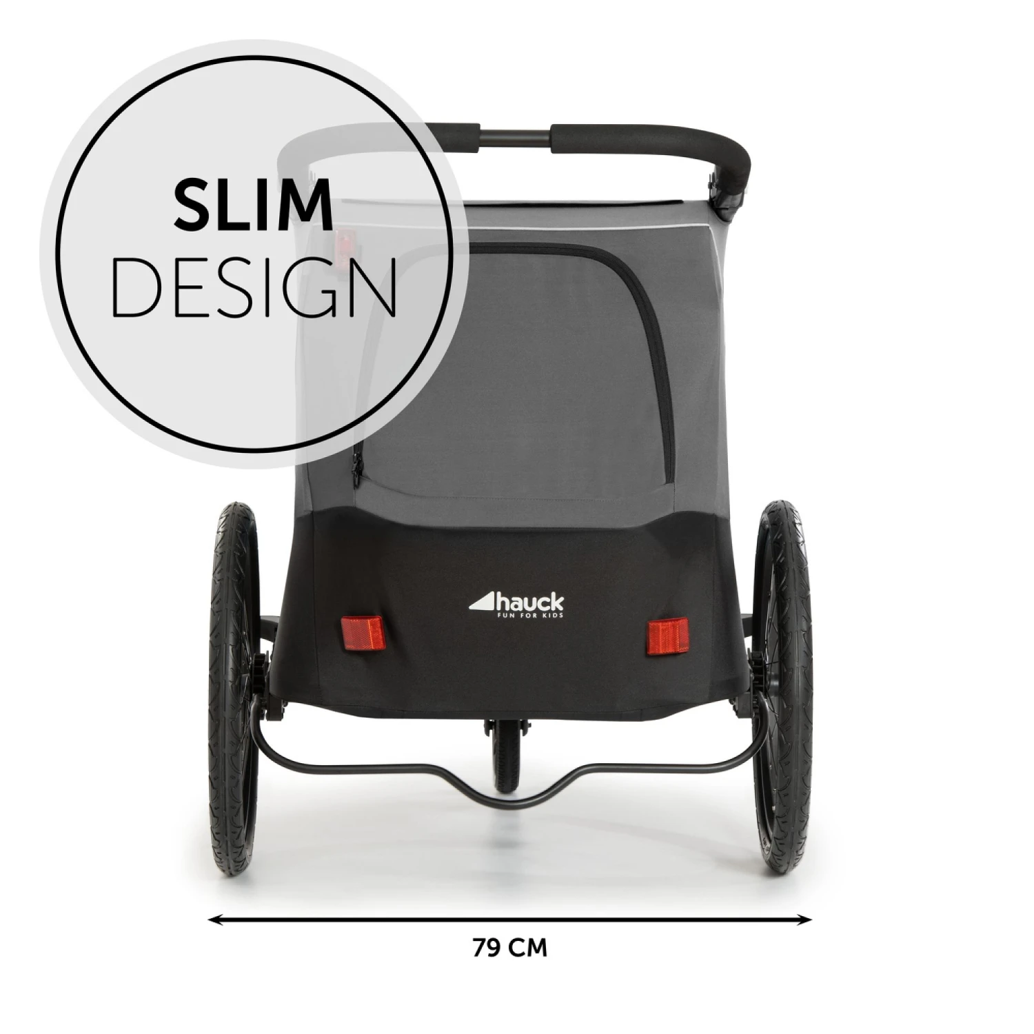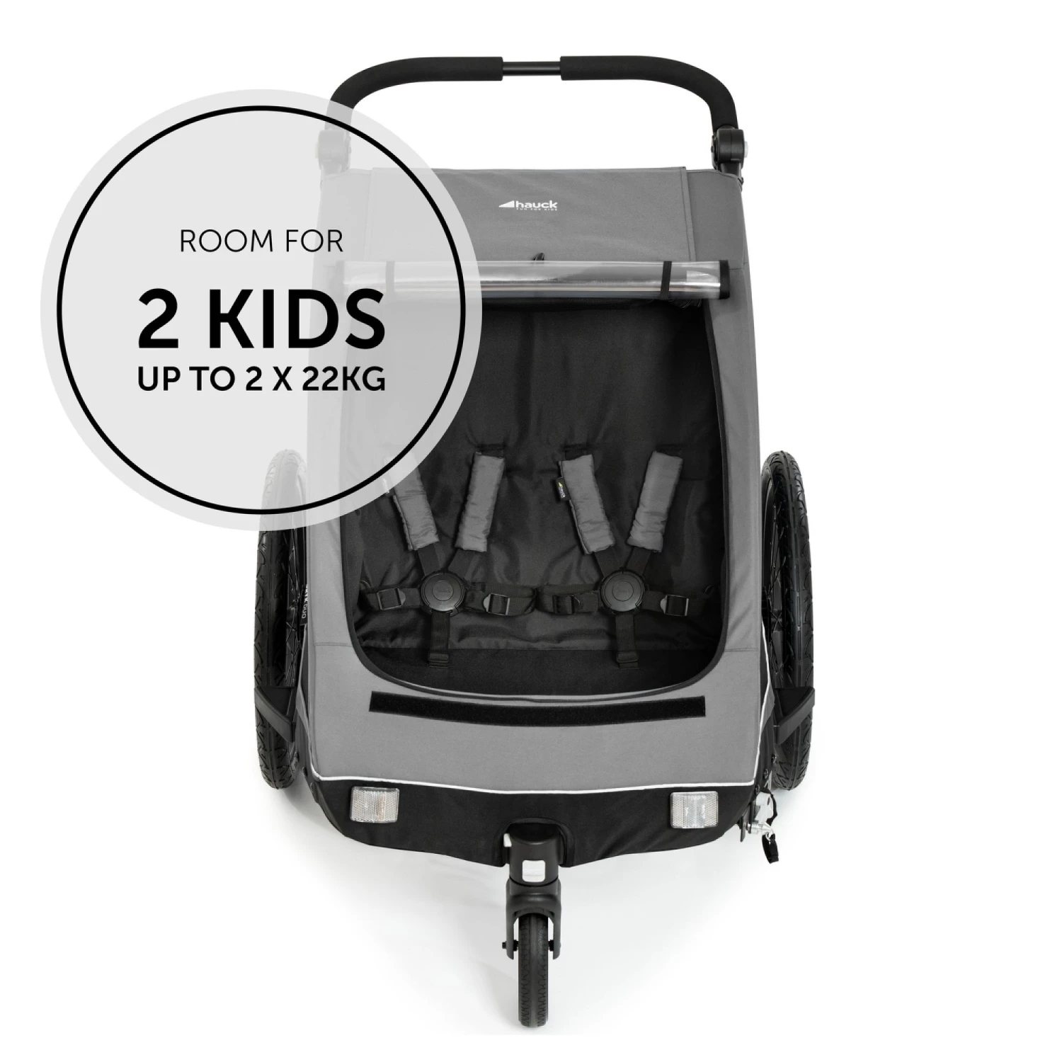 Découvrez le chariot Dryk Duo coloris grey de la marque Hauck. C’est la remorque idéale pour les promenades avec 1 ou 2 enfants. Vous pourrez le fixer à votre vélo pour vous déplacer en famille ou transformer le chariot en poussette. Le pliage est intuitif et facile.