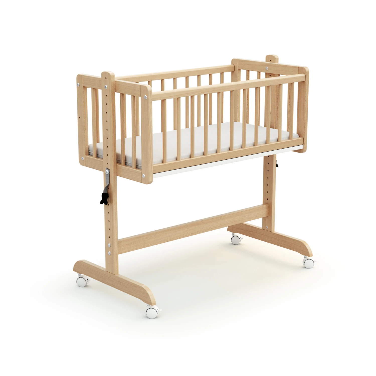 Découvrez le berceau cododo essentiel hêtre verni? de la marque AT4. Il possède une dimension de 40 x 80 cm, taille idéale pour les premiers mois de votre bébé. Ce lit cododo évolutif offrira des nuits reposantes à votre bébé tout en étant à vos côtés. Il a été conçu pour offrir une sécurité optimale à votre enfant. Ce berceau en bois répond à toutes les normes en matière de sécurité de votre bébé. Il possède 4 roulettes avec des freins pour faciliter le déplacement du berceau au sein de votre habitation.
