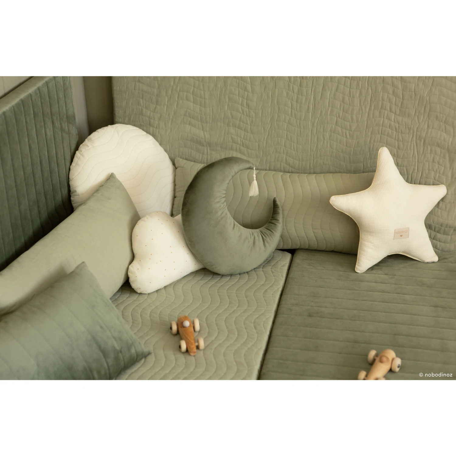 Choisissez ce matelas de sol de couleur olive green de la collection Zanzibar de la marque Nobodinoz. Moelleux et complètement déhoussable, il vous permettra de créer une ambiance détente et cocooning partout où vous le souhaiterez. Coup de coeur déco assuré pour les matelas 60×120 cm en velours recyclé !