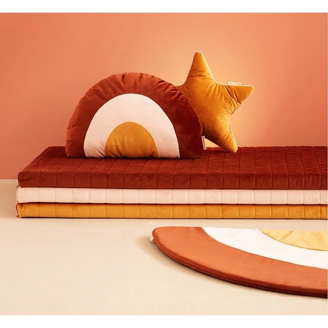 À superposer afin de créer un coin cocooning dans la chambre des enfants ou le salon ! Le matelas de sol mesure 60 x 120 cm et il est à la fois qualitatif et design pour une chambre bébé tendance. En velours issu de textiles recyclés, ce matelas Nobodinoz apportera moelleux et douceur où bon vous semblera.