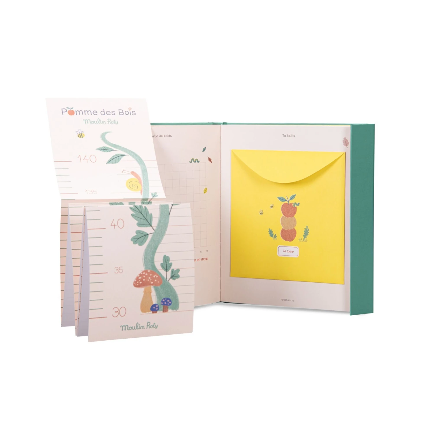 Craquez pour le livre de naissance Pomme des bois de la marque Moulin Roty. L’accessoire indispensable pour conserver les souvenirs de votre enfant de ses premiers jours jusqu’Ă ses 6 ans. Ce coffret de naissance Moulin Roty comprend 80 pages illustrĂ©es que vous allez adorer remplir en famille.