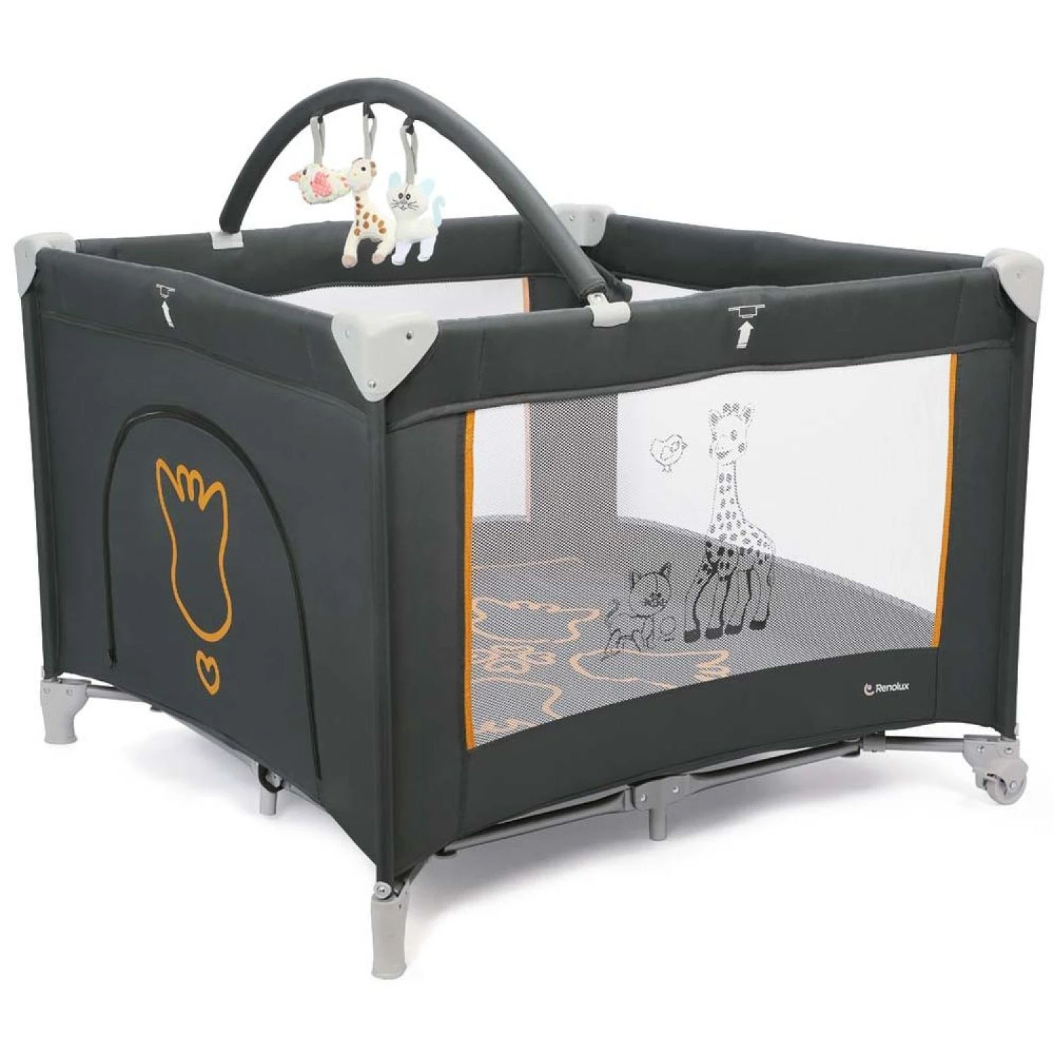 Découvrez le parc Prism Sophie la Girafe Sunrise de la marque Renolux. Le parc Prism détient un tapis décoré ainsi qu’une arche d’éveil amovible avec 3 peluches suspendues. Ce parc Renolux sera idéal pour tous les moments d’éveil comme pour les moments de sieste.