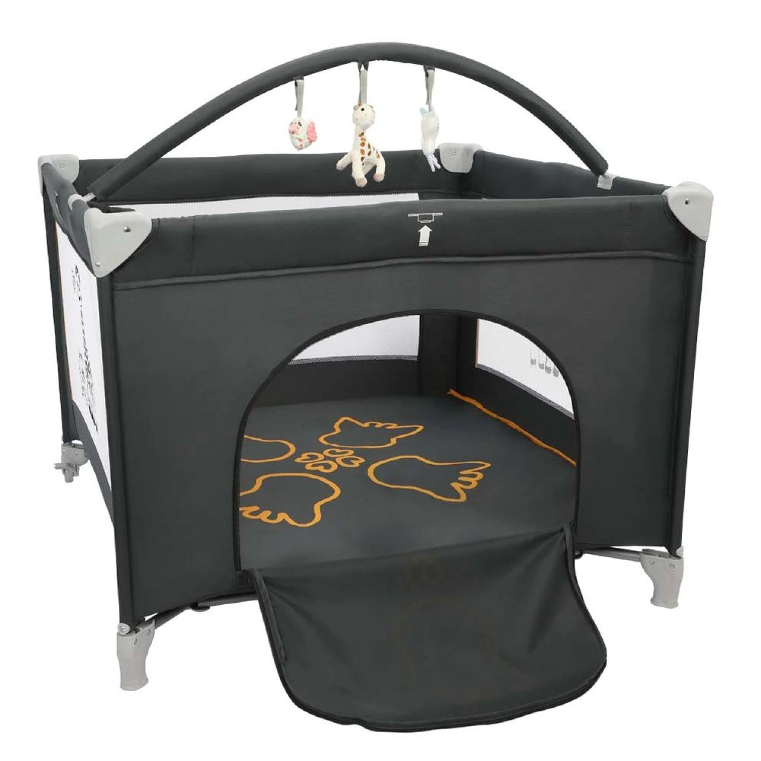 Ce parc avec porte zippée détient des côtés en filet pour permettre une meilleure aération et l’un des côtés peut s’ouvrir pour permettre à l’enfant d’entrer et de sortir tout seul. Equipé de 2 poignées, le parc Prism permettra à votre bébé de se lever tout seul. Le parc Prism Sophie la Girafe pourra également être utilisé en tant que lit d’appoint pour 1 ou 2 nourrissons. Grâce à son pliage facile et rapide, il s’emporte partout, chez des amis, les grand-parents… Vous allez pouvoir le déplacer facilement grâce à ses deux petites roues.