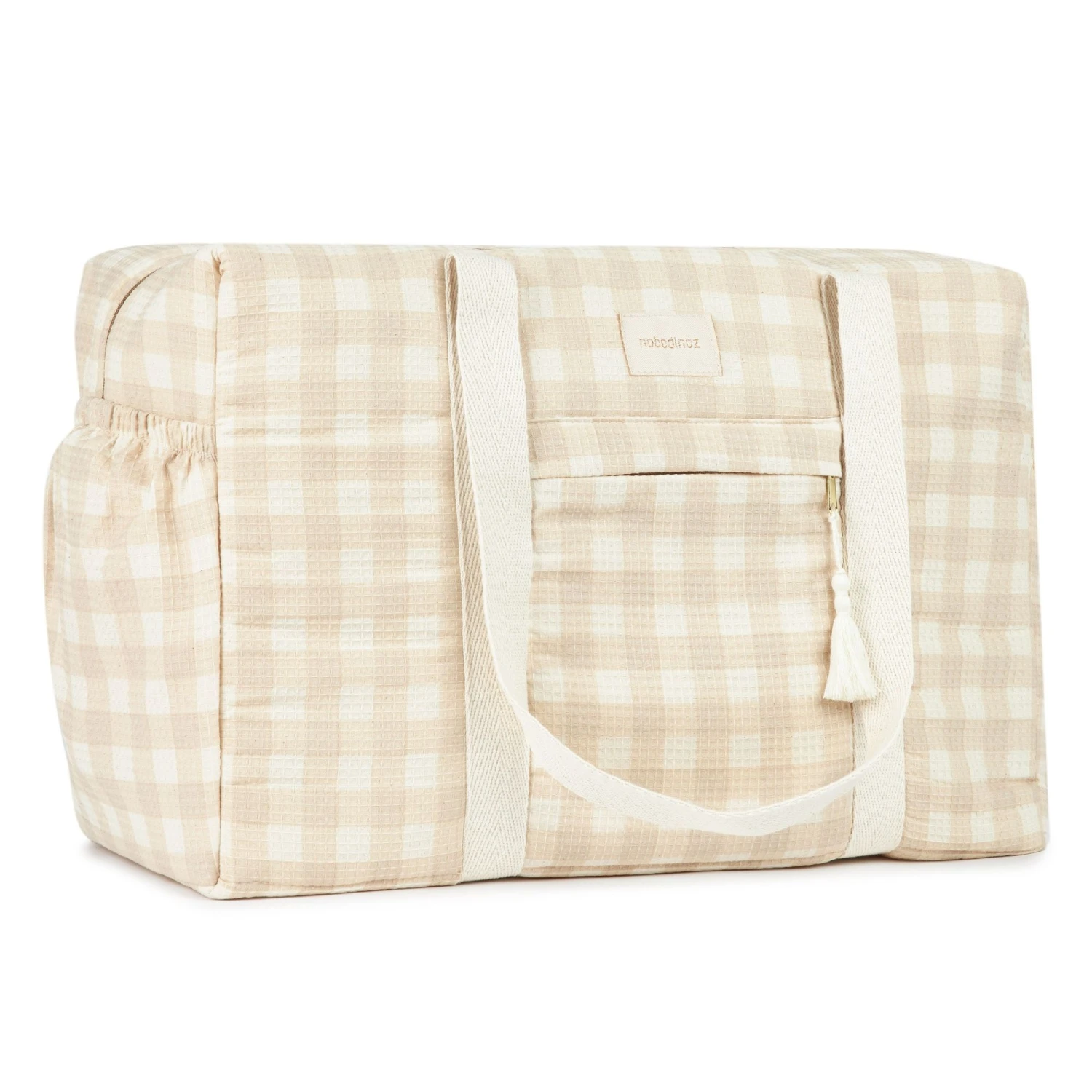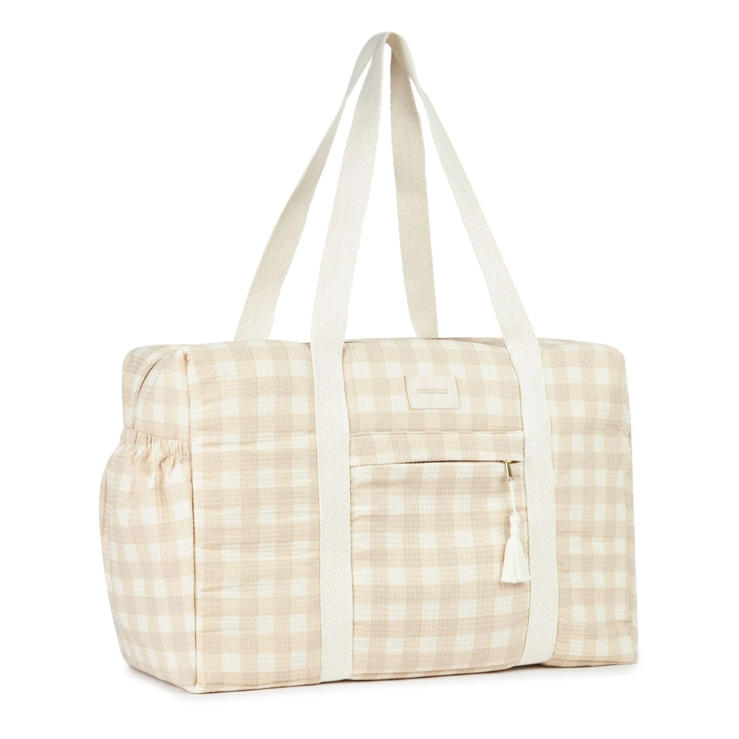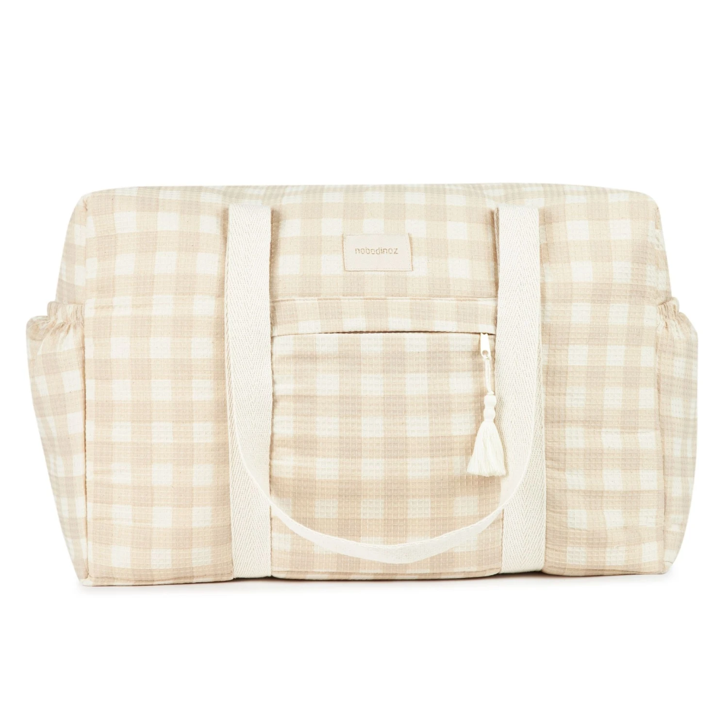 Optez pour le sac à langer Opéra nid d’abeille Ivory Checks de la marque Nobodinoz. Avec son coton bio imperméable, ses 3 poches de rangement et sa grande taille, il sera idéal pour préparer les affaires de votre bébé pour le jour J. Il deviendra ensuite un sac à langer ou un sac week end au top du style !