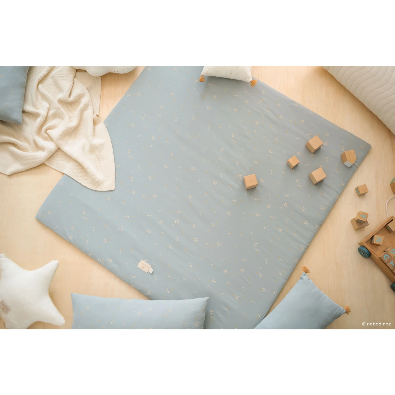 Offrez à votre enfant un grand espace de jeux avec le tapis de jeu Colorado Willow Soft Blue de la marque espagnole Nobodinoz. Avec son coton bio tout doux et ses grandes dimensions, il sera le confortable complice des premiers jeux de votre bébé.