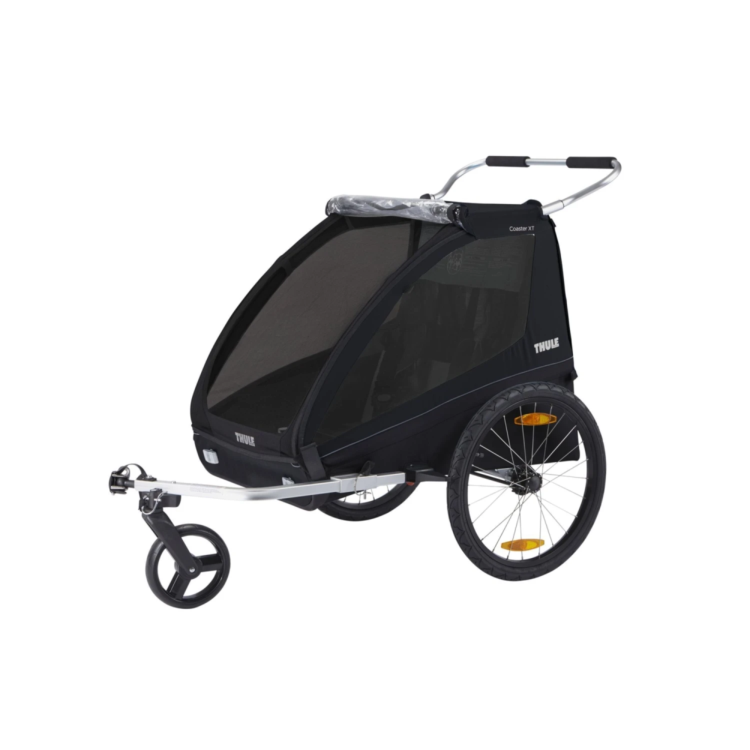 La remorque de vélo Coaster 2 XT coloris Black de la marque Thule vous garantit une promenade confortable en toute sécurité avec votre enfant. Véritable 2 en 1, vous pourrez transformer votre remorque en poussette grâce aux kits fournis. La marque Thule allie confort et sécurité avec son système de fixation ezHitch (breveté par Thule). Confortable pour deux enfants, la remorque Coaster 2 XT est renforcé par un arceau Height Right réglable en hauteur.