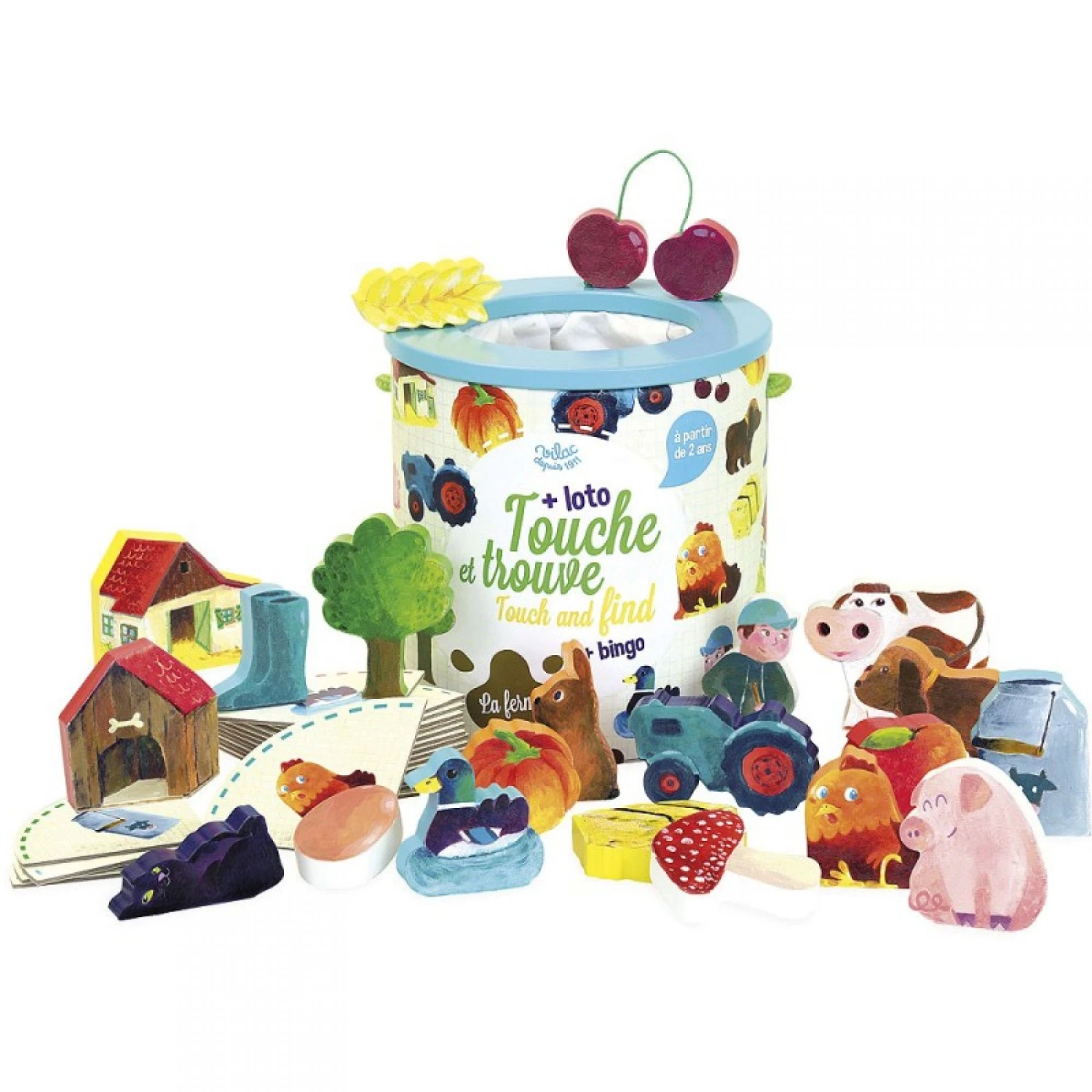 Découvrez le jeu tactile enfant Touche et trouve la ferme de la marque française Vilac, un jeu idéal pour développer le sens du toucher pour les enfants dès 2 ans tout en s’amusant. Vilac vous propose un jeu de reconnaissance tactile qui devient un jeu de loto sur le thème de la ferme grâce aux cartes à compléter.